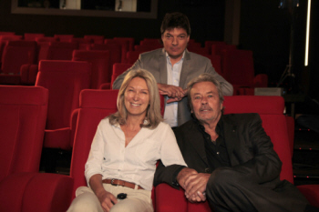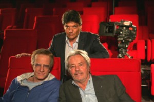 Warluzel toujours sérieux, Delon toujours souriant, amis associés en petit cinéma rouge et sans cravate