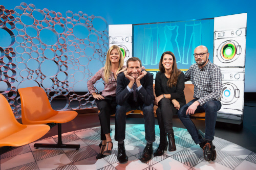 Yann-Olivier Wicht / Quatre chroniqueurs de « La grande lessive » (Photo RTS/Laurent Bleuze)